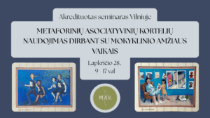 „METAFORINIŲ ASOCIATYVINIŲ KORTELIŲ NAUDOJIMAS DIRBANT SU MOKYKLINIO AMŽIAUS VAIKAIS“! (8 val.)!